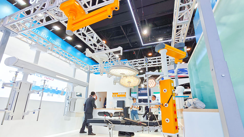 费普顿医疗作为专注于医疗辅助设备研发、生产与销售的高新技术企业,此次参展重点展示了医用手术室吊塔、ICU吊桥等核心产品,吸引了众多国际同行与采购商的关注。